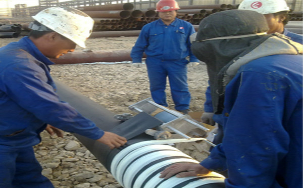3、根據(jù)現(xiàn)在的氣溫溫度,結(jié)合我司產(chǎn)品特點(diǎn),底漆涂刷后即可纏繞膠帶。