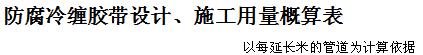 防腐冷纏膠帶設計、施工用量概算表