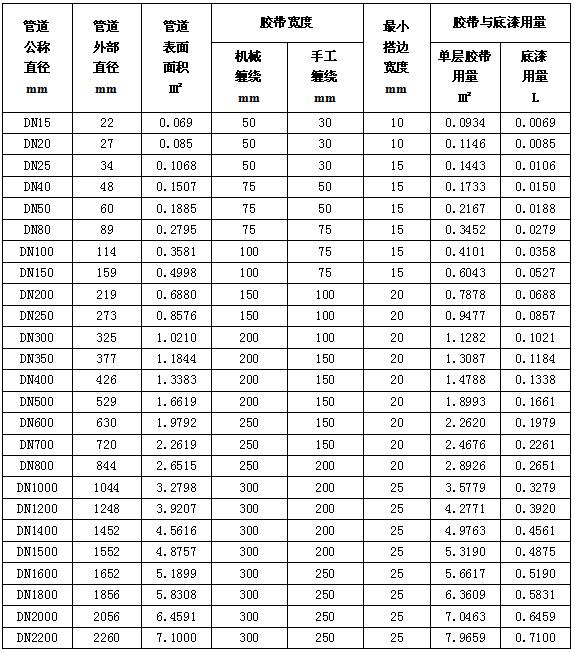 聚丙烯增強纖維防腐膠帶管道用量查詢表