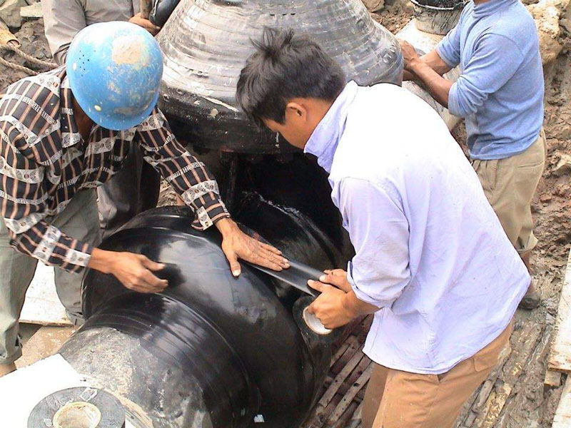 (1)聚乙烯防腐膠帶防腐層表面應(yīng)平整、搭接均勻、無永久性氣泡、皺褶和破損;
