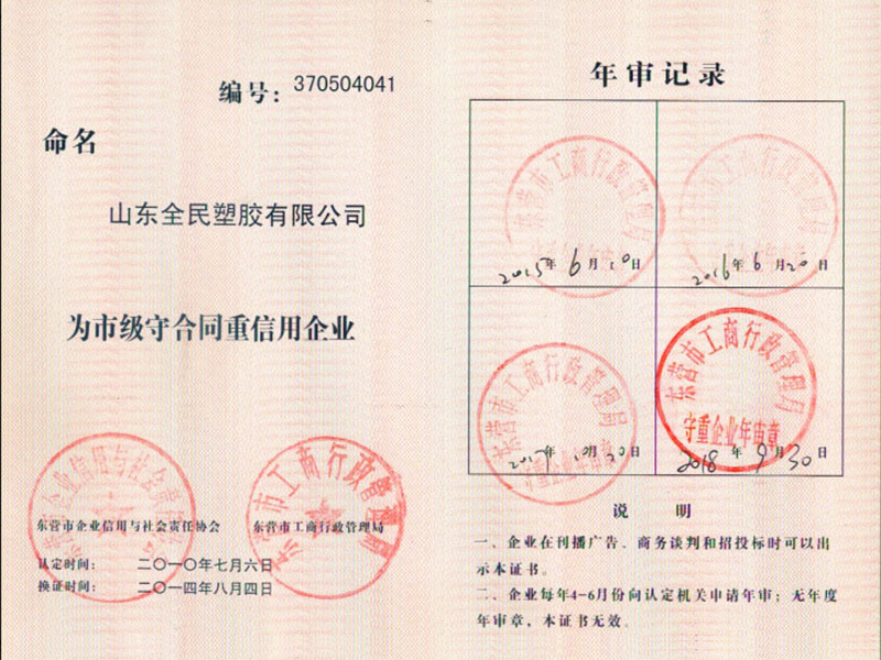 市級守合同重信用2018年審核
